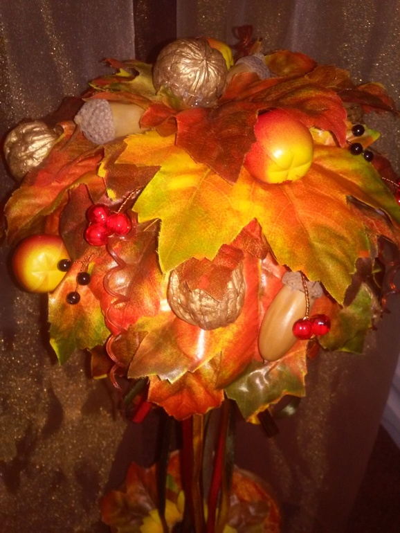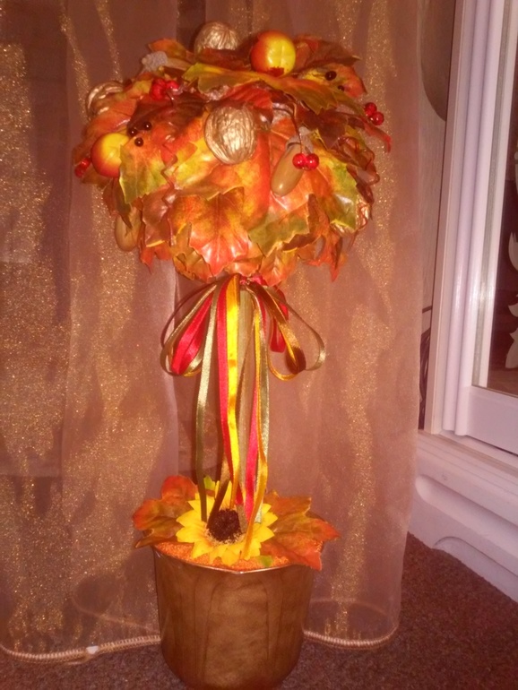 Но самое интересное было когда мыего с дочкой в сад принесли. Дети когда дерево увидели начали дружно хлопать в ладоши и кричать "Слава Оле " описать дочкино довольное лицо, конечно не возможно. И воспитателям топиарий тоже так понравился, что его поставили как выставочный экземпляр без продажи. Чтобы его дети из других групп не купили. Так что теперь наш топиарий украшает нашу группу.