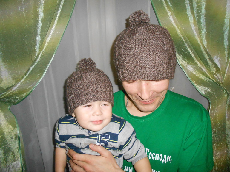 Хвастаюсь быстро)))шапками двойняжками для своих мужиков