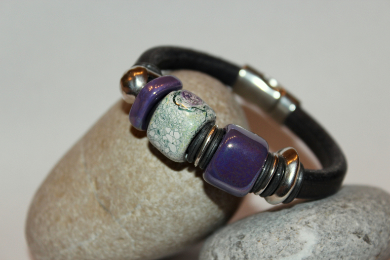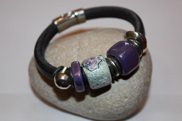 Бижутерия для слингомам. Слингобусы. Грызунки.Один из моих самых любимых браслетов. Серая кожа, с легким сиреневым отливом, керамические бусины. Делала в подарок, но обязательно сделаю и себе.