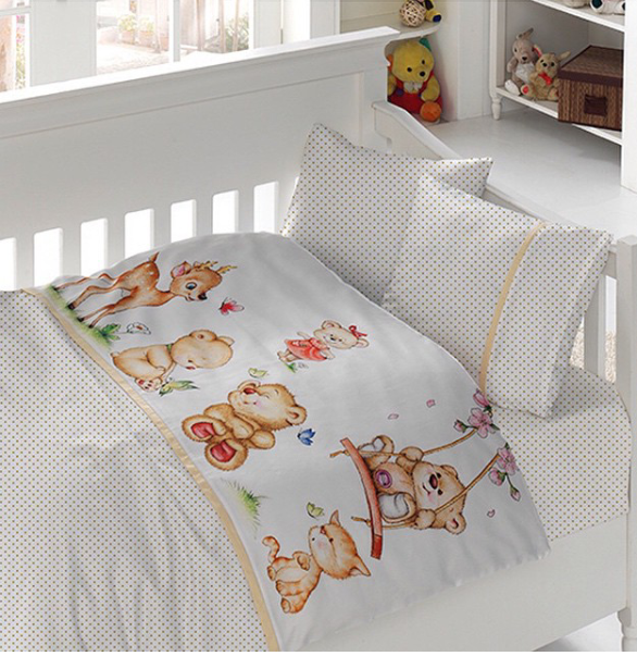 Просто нижняя сторона- ткань с мишками. И пододеяльник отогнут. И бейкой сверху обшит.