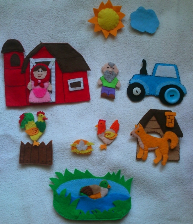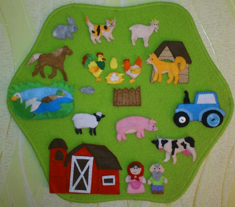Дошила бабушку с дедушкой, которые ухаживают за животными, трактор, саму ферму, пруд для уток, конуру. Денис настоял, что бы я к будке сшила трубу. Ну пусть будет труба.