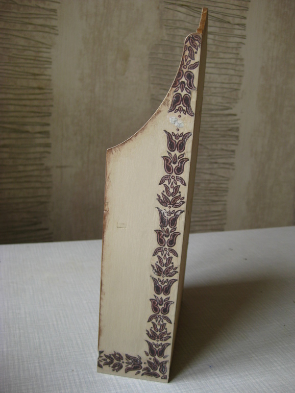 Неее, это была декупажная карта, я вырвала мотив, зашкурила его с обратной стороны и прилепила. И только потоооом, когда полезла смотреть всякие мк по декупажу узнала что декупажную карту, оказывается, надо было отмачивать в воде =))) На этой полке 11 слоев матового акрилового лака, шкурила каждый пятый слой.... на картинке шкурила каждый второй. И не спасло =( В следующий раз буду умнее =))