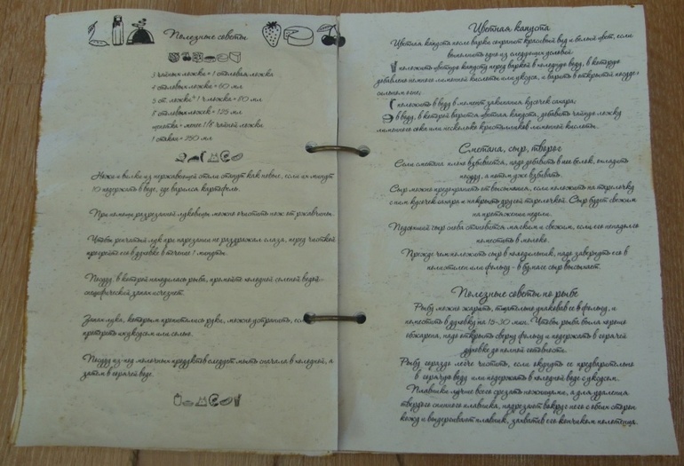 Внутренности разделены на разделы, листы состарены кофе