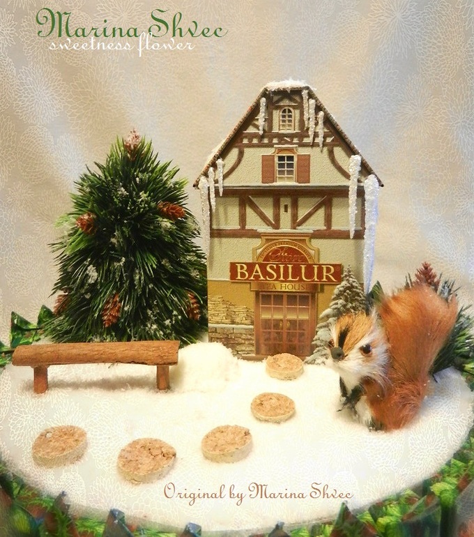 Марина, чудо-чудное, диво-дивное, зимняя сказка в миниатюре. Ты еще и архитектор!!! Очень красиво. Не знаю, чем заказчику белка не приглянулась, по мне — она на месте, около домика, правда уже орешки не грызет.....