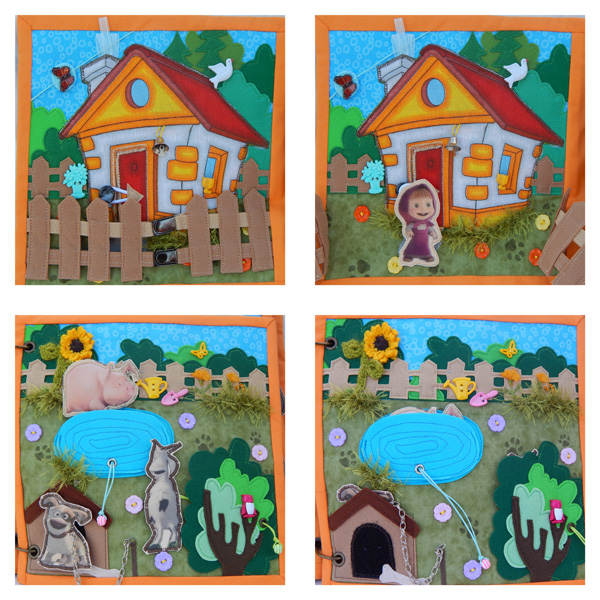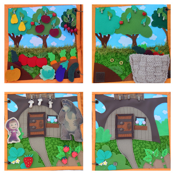 липучках, собираются по принципу "пирамидки". На второй страничке Маша