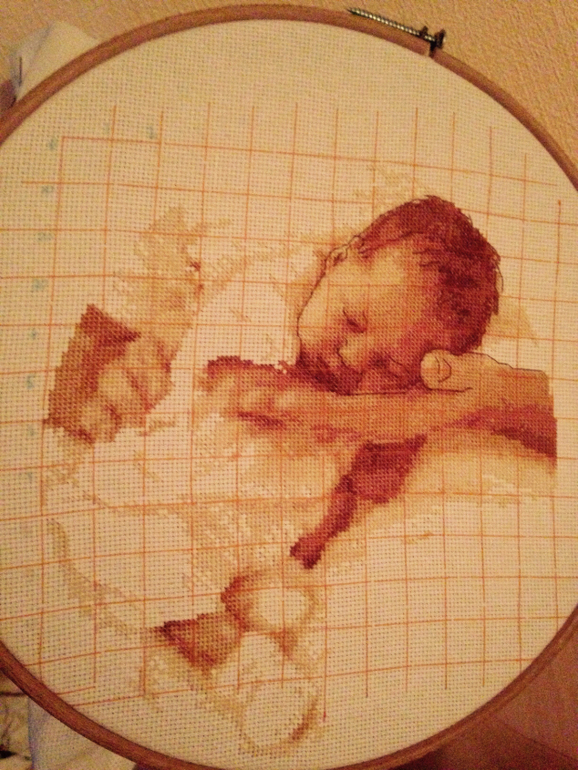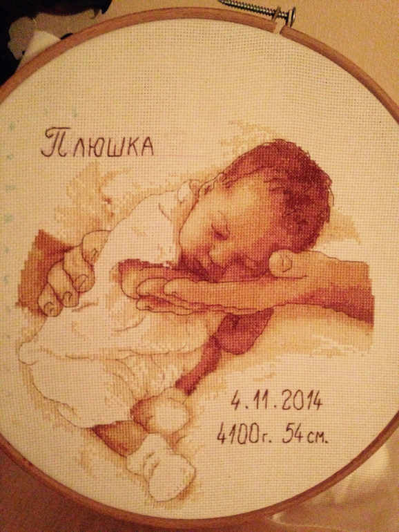 Очень здорово! Видела оригинал этого фото в журнале Вышиваю крестиком за 2008 год, на нем отец держит своего новорожденного сына.К журналу прилагался схема....как же жаль, что я ее не сохранила, сейчас бы обязательно вышла!