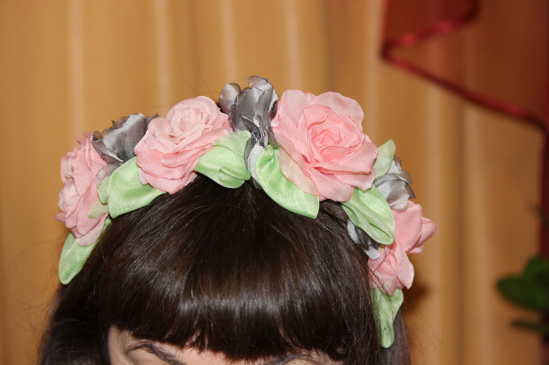 Ободочек с розами сделала для нашей Лизуньки, но решила показать веночек на себе, чтоб было наглядней.