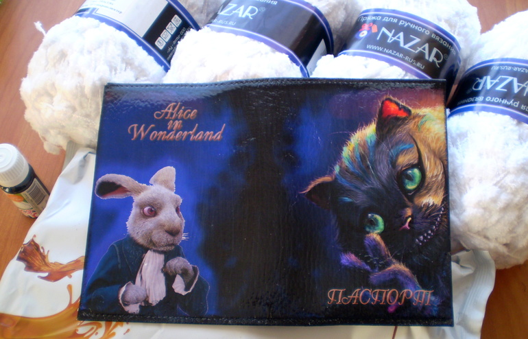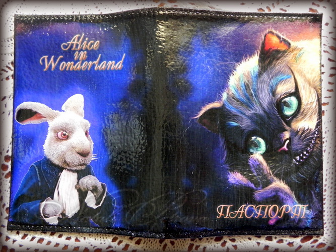 Наташенькая, как истиная феечка, исполнила мою давнюю хотелку: СУПЕР-ОБЛОЖЕЧКА на паспорт, с любимой мною темой Чеширского Кота)))