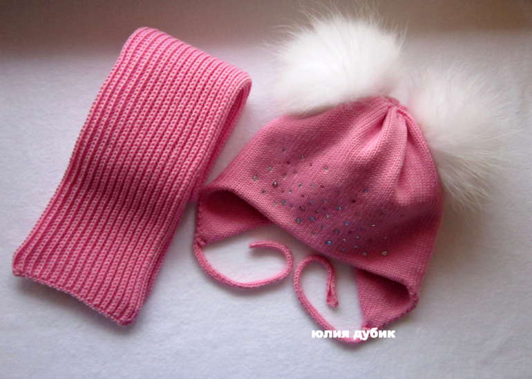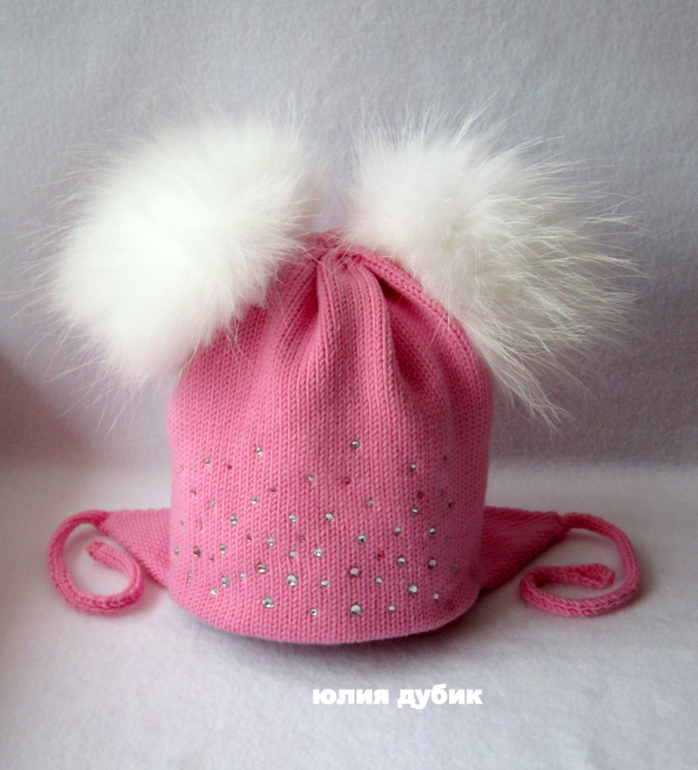 Для доченьки нашей ББ-ки.....шапочка двойная из мериноса...внутри флис...помпошки из белого енота...украшена россыпью страз.....+ шарфик в комплект...