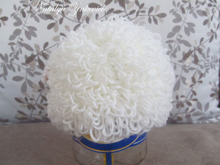 Ну, чтобы ее на улицу — нужен подклад, или шапочку под нее. А вообще, я ее вязала, как для фотосессии, сейчас же модно новорожденных во всяких смешных шапочках фотографировать. Можно и как элемент костюмчика — как раз год подходящий)