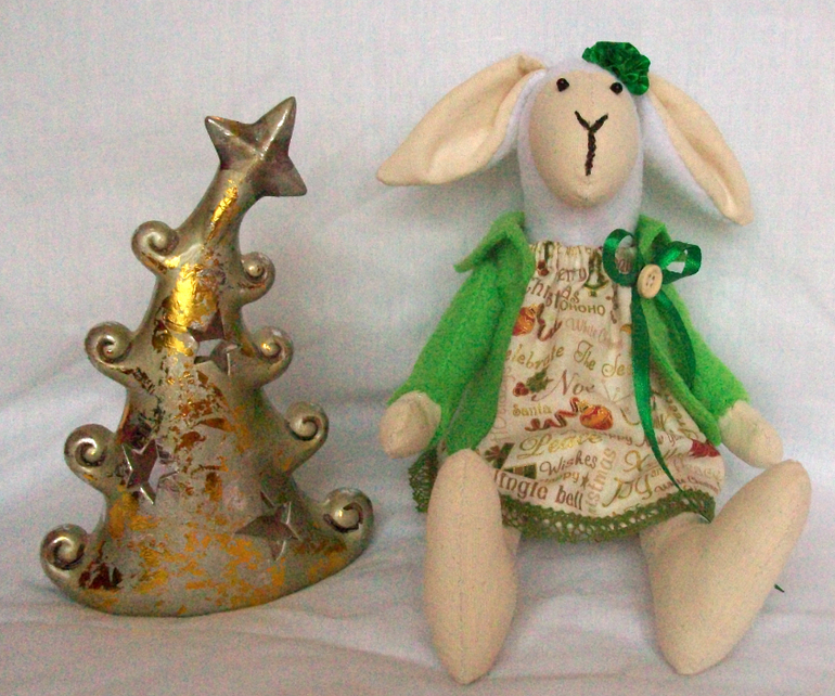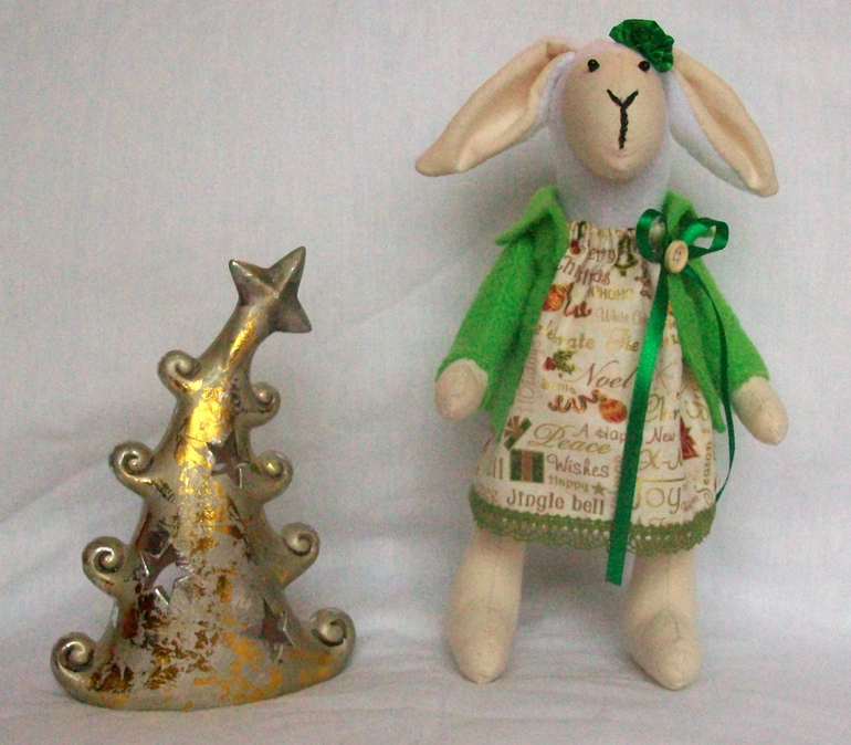 Новогодняя овечка в зелёном!Рост 25 см.Сидит и стоит самостоятельно!
