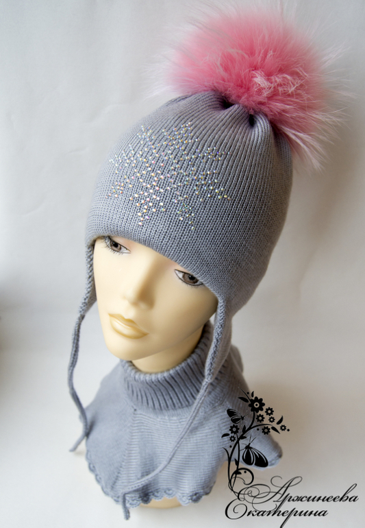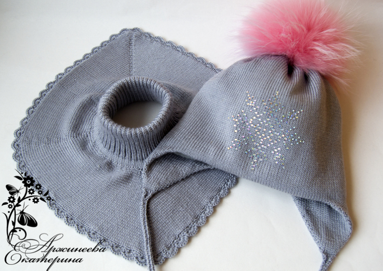 Второй комплект для коллеги рукодельницы Анны, сереньки нежный комплект с шикарным розовым енотом
