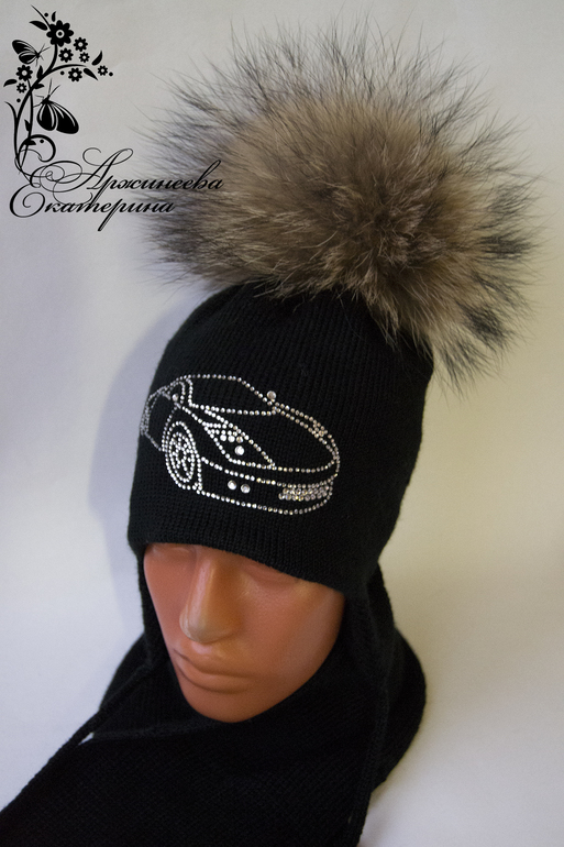 Первый комплект связана для моей землячки Надежды, черный ,строгий, для настоящего маленького модника с аппликацией машинки.