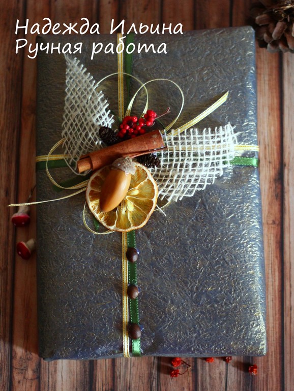 Хочу показать Вам, как я упаковала мужской подарок. Сделала на заказ ежедневник и его красиво упаковала))))