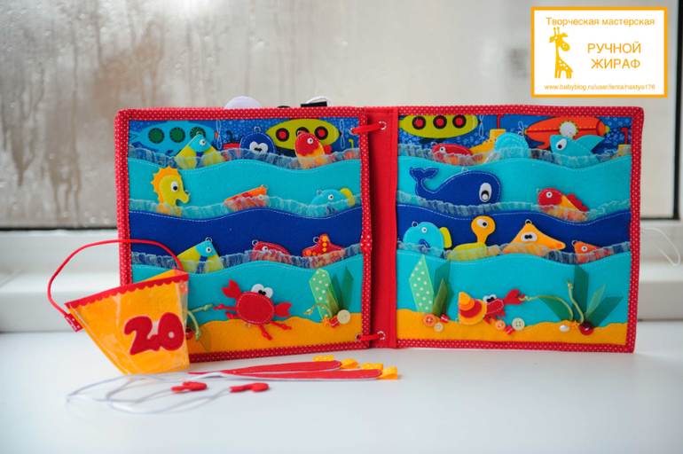 5. Рыбалка магнитная (хотя не по теме Маквиновской, но мне безумно захотелось сюда рыбалку сделать))))) ) есть ведро для рыбы с цифрами от 1 до 20 (учимся считать до 20) , две удочки , 10 рыбок парных + краб, рак, медуза, осьминог, кит, черепаха, акула, скат, морской конек.