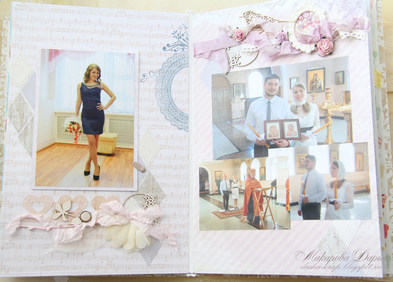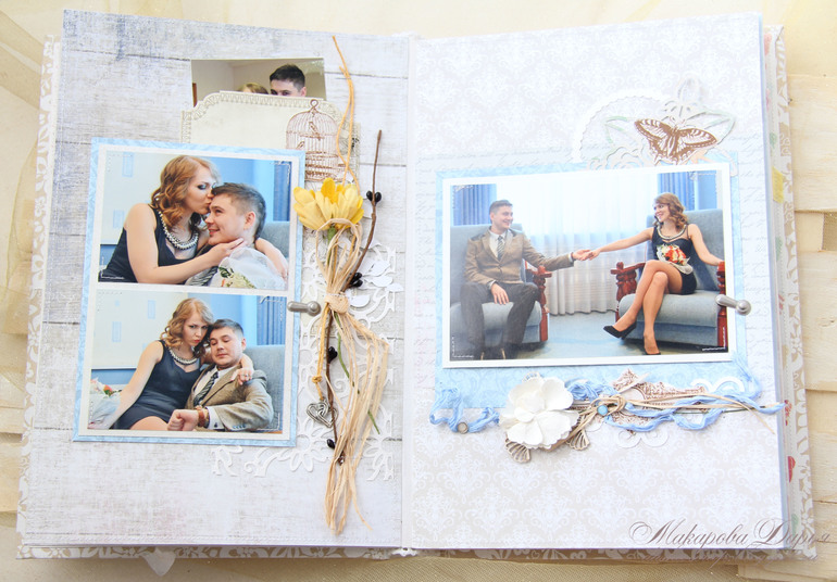 СкрапбукингПривет! Я к вам с новой работой - очень нежным свадебным альбомом, формат 20х30см. Делать его было очень приятно, т.к. альбом сразу с фотографиями делать проще, да тем более, когда на них запечатлена такая красивая пара)