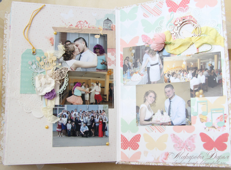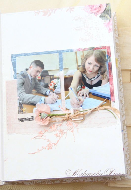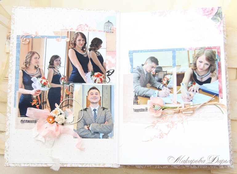 Настя (невеста) просила сделать некоторые странички нежными, а некоторые яркими и добавить музыкальных элементов, т.к. они с женихом оба музыканты. Мне кажется, я справилась с поставленной задачей)