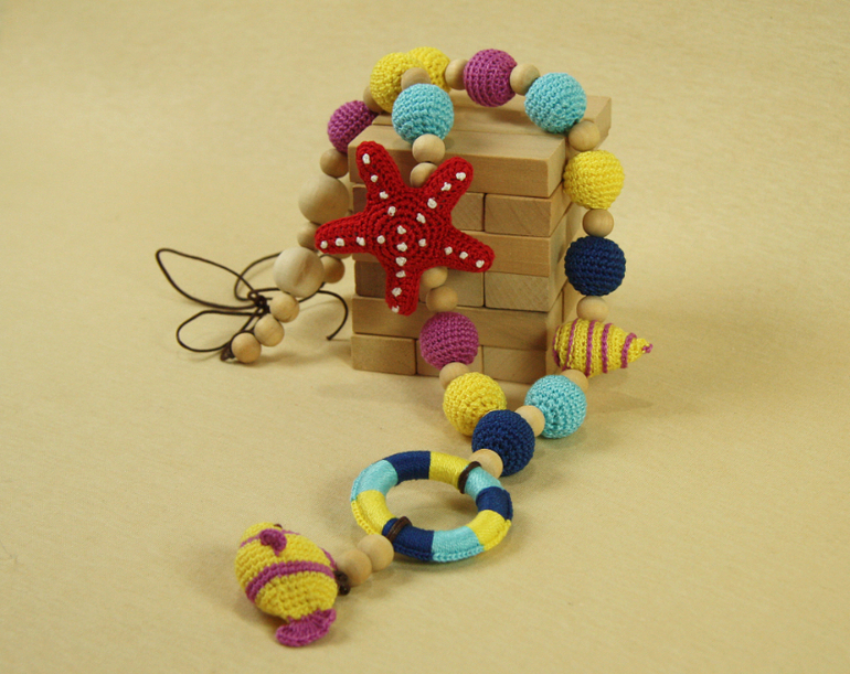 Спасибочки!!! Это просто бусины деревянные обвязываются и дополняются вязаными игрушками