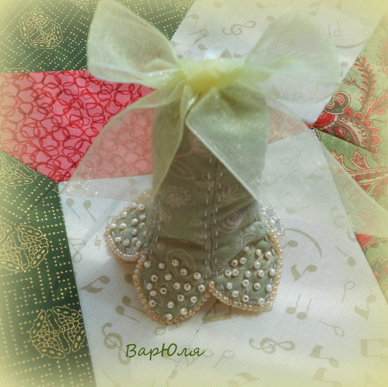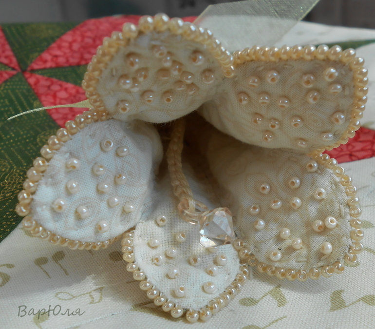 две тряпочки,созвучные по цвету, наполнитель для пэчворка, немного бисера и ...