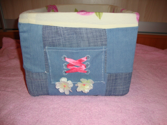 В основе корзины обычная коробка. Я сама собиралась выбросить джинсы. Хорошо что не сделала этого, пригодились. Детям тоже очень понравилась корзина. Надо теперь для дома сшить такую же.