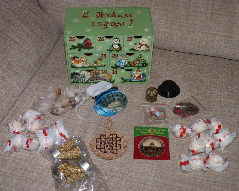 Девочки, не так давно, ко мне в голову пришла идея новогоднего календаря-ожидания нового года, но в силу моих умений (или точнее не умений) воплотить его в реальность своими силами не представлялось возможным. Я кинула клич в этом сообществе с просьбой помочь и никак не ожидала, что мне откликнется самая настоящая волшебница и замечательная девушка -