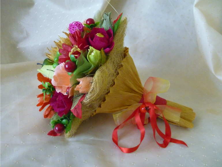 Привет, девочки! С момента увлечения этим ремеслом прошло полгода. затянуло так, что и не выберешься... и хочу вам показать мои первые "потуги" в этом деле. Всё делала в подарок родственникам. А и их оказалось, не так просто удивить. Всё было принято без всяких эмоции. Оцените, пожалуйста, мои букетики.
