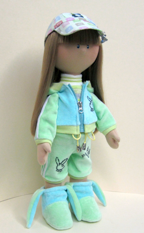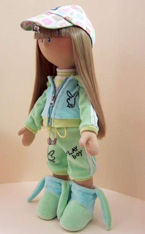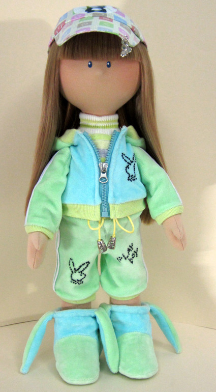 Сделались две девчули, рост 45 см. Идейку с тапочками-зайками видела у кого-то из здешних рукодельниц, извините, не помню имени (если кто-то подскажет, я обязательно укажу)