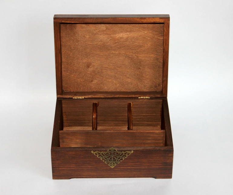 На этот раз Морение древесины, большая чайная коробка - очень качественная и душистая заготовка из сосны. Вкусно пахнет деревом, когда открываешь)))