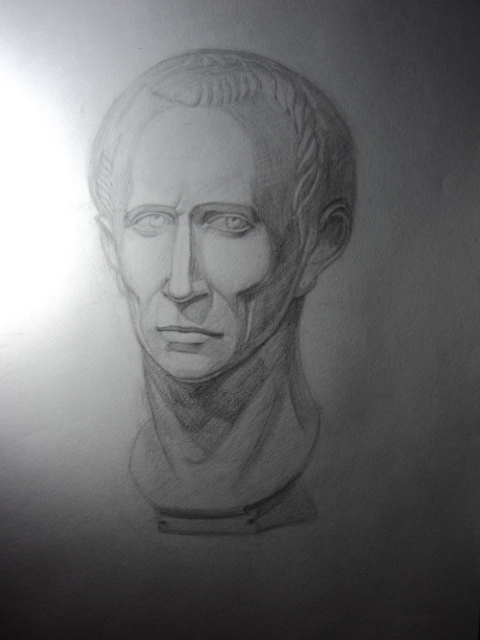 Живопись, точечная росписьЕщё одна работа аудиторная. Гипсовая голова цезаря. Карандаш, акварельная бумага, формат А2.