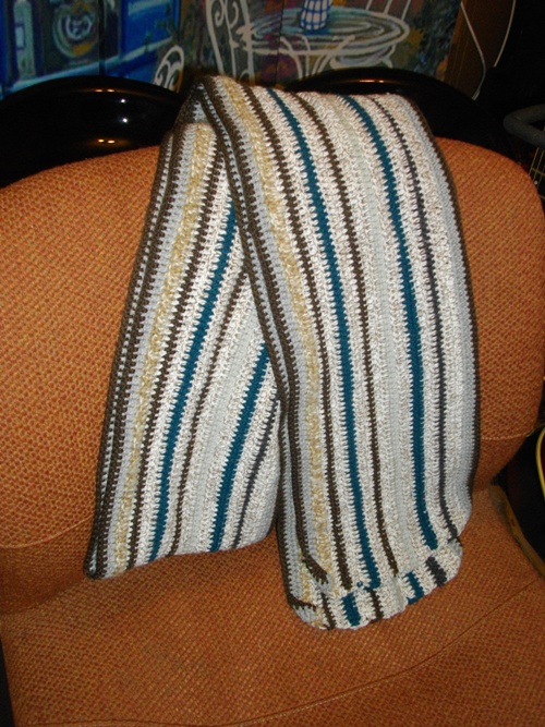 Очень красивый шарф, стильненький такой! Оль ты мужнина гордость, радость и слааабость;)Молодец! Золотые руки!
