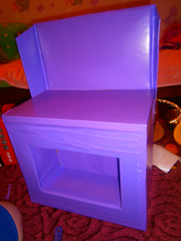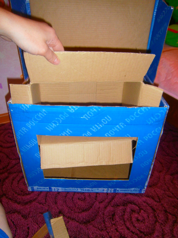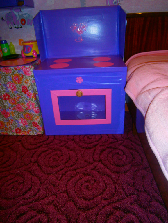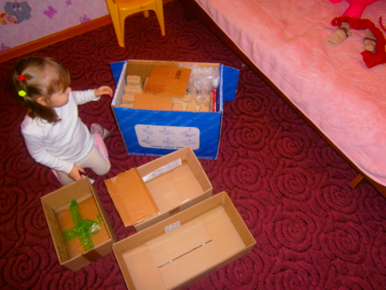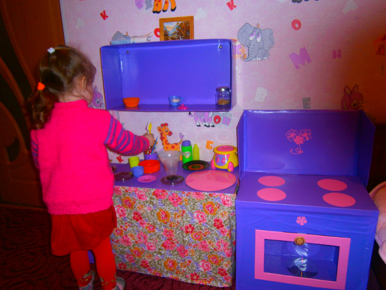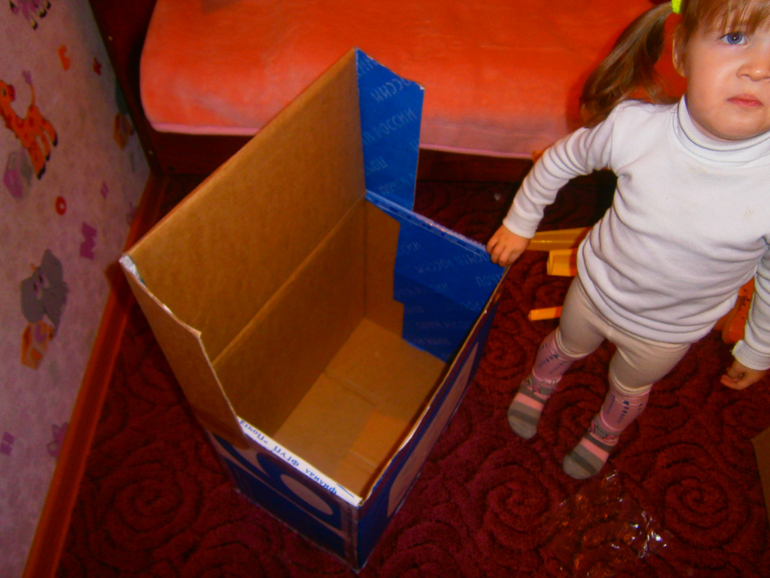Ну это ж бюджетный вариант для ребенка)) Все равно все в скором времени будет поломано и смято, а выбросить не жалко, коробки же)полочек нет. шторка появилась от лени — коробки не обклеила))