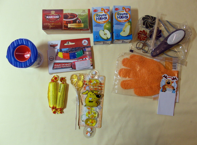 Еще Алёше достались всякие полезности: часики, я таких не встречала нигде, такие интересные)) стаканчик для рисования, пластилин, мягкий, то что нужно)) вкусный сок))