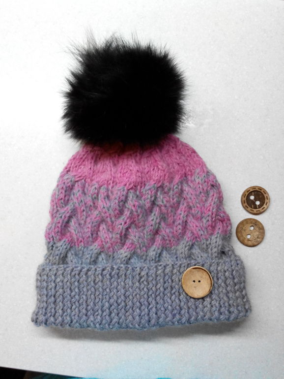 Я конечно не спец, но основываясь на моем предположении мне кажется что вяжется в три нити. Низ серая+серая+серая, переход серая+серая+розовая, далее серая+розовая+розовая, и верх розовая+розовая+розовая ниточка. Как-то так, чтобы был плавный переход от цвета к цвету.