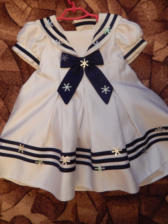 Девочки, всем привет! Может, подскажите, мы первый год в садик пошли, болеем постоянно, в начале декабря специально узнавала у воспитателя, какой наряд готовить на новый год, говорили, что всегда в любом приводили деток, тут выходим с больничного - а все девочки должны быть снежинками) Платье искать опять и покупать не хочу, как можно украсить имеющееся? У нас такое, в реале оно белое (на картинке как-то темнит). Мишурой обшить - как-то самодельно будет смотреться? нашить маленькие снежинки? Каким цветом ниток ,чтоб не страшно? (на клей садить жалко) Шитьем тоже испортить могу платье, зацепки будут... Что посоветуете? На голову уже тоже купила белый ободок с огромным цветком.