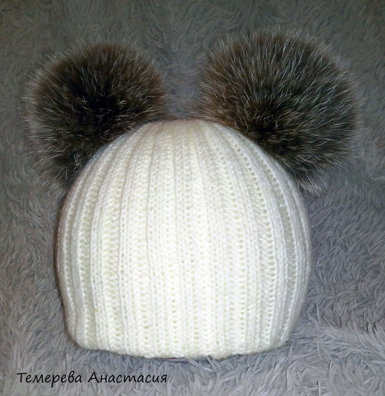 А еще была одна связана на заказ.Пряжа та же Ализе Ланаголд Файн.Шапочка двойная.Помпоны делала сама из опушки клиента