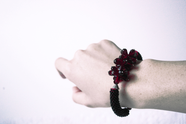 Браслет "Тайны рубина". Еще один эксперимент с красной изнанкой) Очень красивые чешские бусины-капельки насыщенного рубинового цвета.