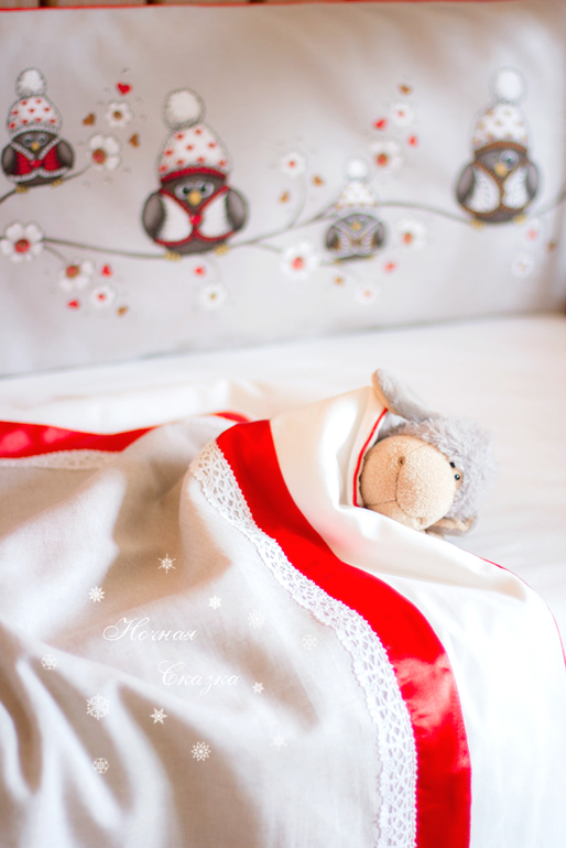 Практика показала, что на постельном белье ленты живут значительно дольше, чем несколько месяцев, нежели в отделке детской одежды например. Мамочки часто просят использовать именно их, т.к. они очень красиво смотрятся. Для тех, кто не хочет, атлас можно заменить репсом например. Вариантов много. У меня гибкий подход. =) Зависит от желания клиентов.