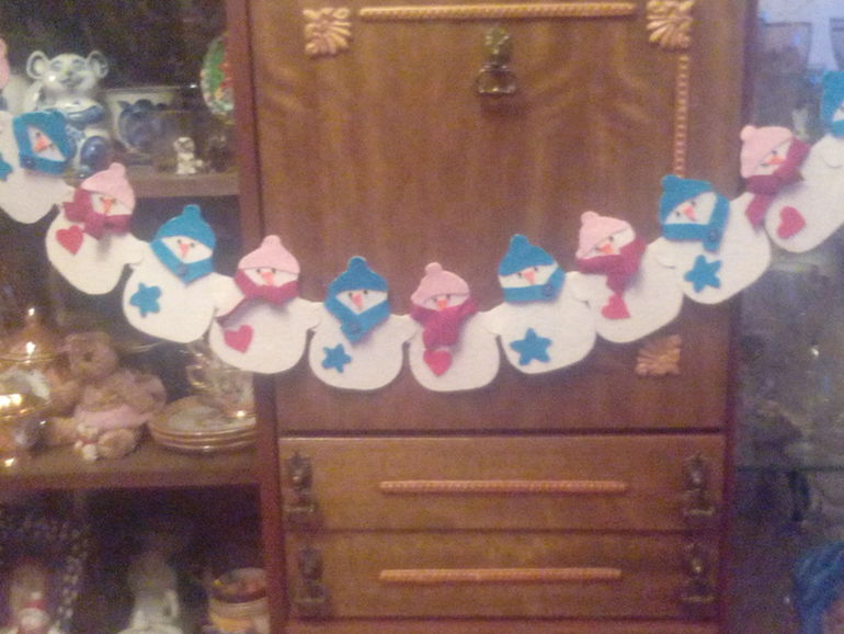 Поделки с детками.Вот слепили с Митей снеговичков. Митя подбирал пуговицы и раскладывал по цветам детальки. Фото только не очень- с планшета.(