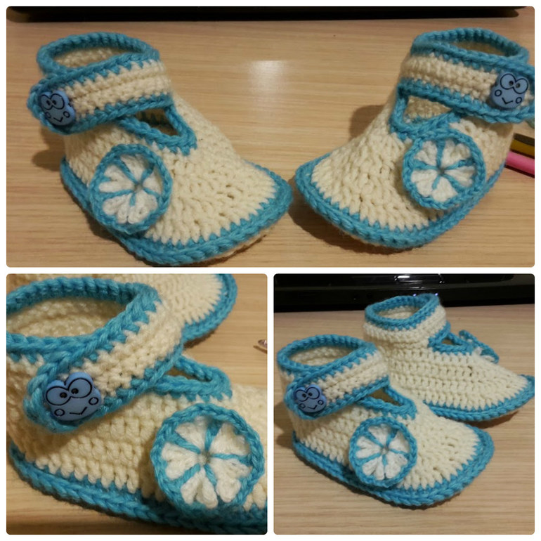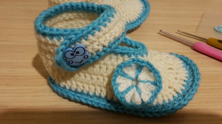 Для племянника Миши получились такие вот крошечные и, в тоже время, теплые домашние сандалики...