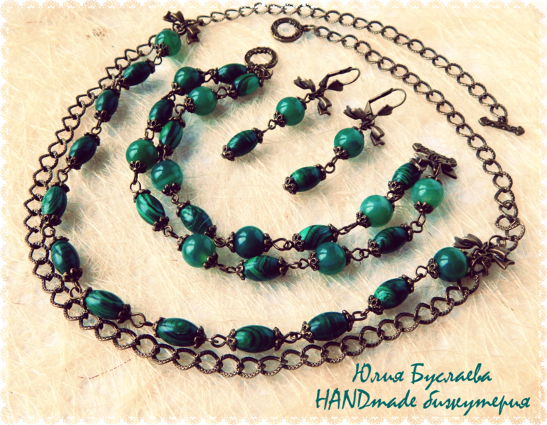 Бижутерия для слингомам. Слингобусы. Грызунки.Всем привет. Продолжаю показывать свои работы. В основном создаю украшения с цветами из полимерной глины. На них можно посмотреть в моем дневнике. Заходите, буду рада. Сегодня у меня Комплект - колье, серьги и браслет из тонированного агата и малахита, фурнитура цвета бронзы. Собрался на одном дыхании.