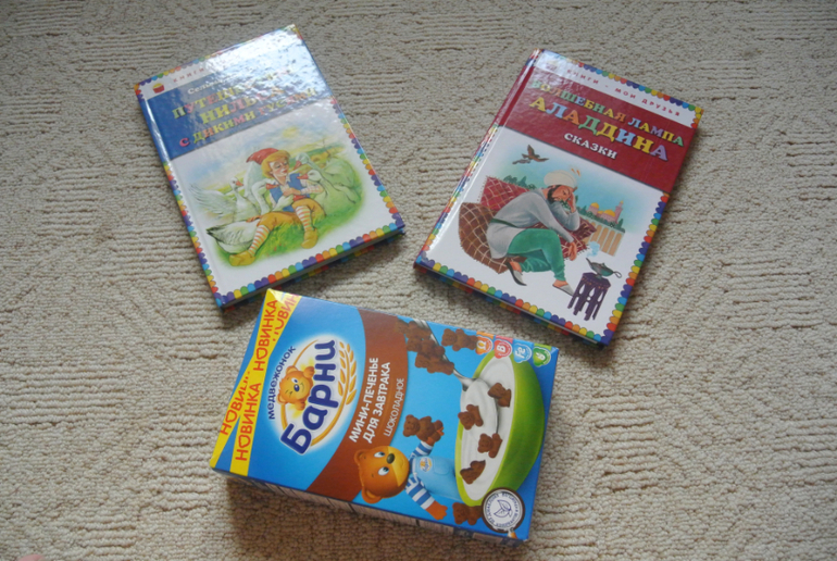 Книжечки еще не читали, там конечно много текста, без картинок им тяжеловато и печеньки ням ням