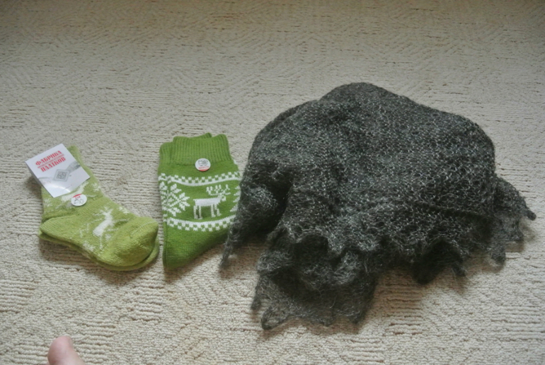 носочки такие приятные, а шарфик я сама примеряла, так тепло в нем сразу становится