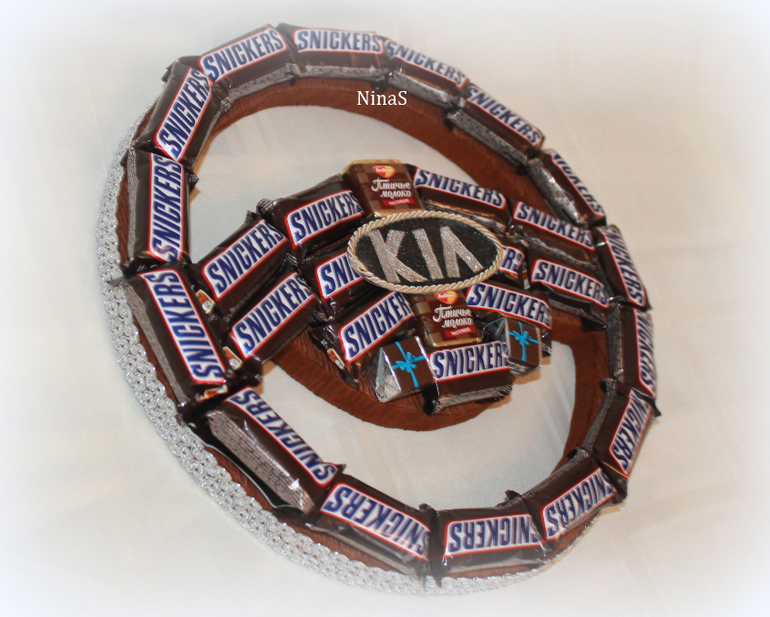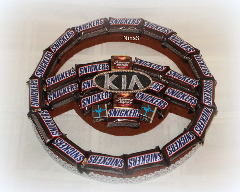 и руль из конфет для папы. Говорят счастливый тот кто родился в Новый год!
