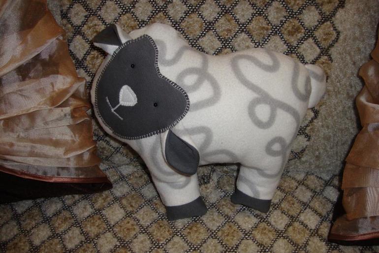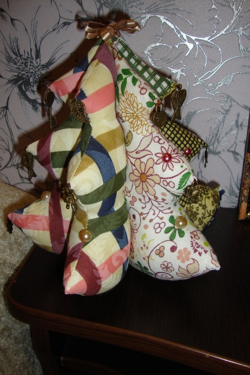 Символ нового года - ёлочка и подушка-овечка, сделанные золотыми Ксюшиными ручками. А на каждой иголочке шармик - с определенным смыслом!!!!