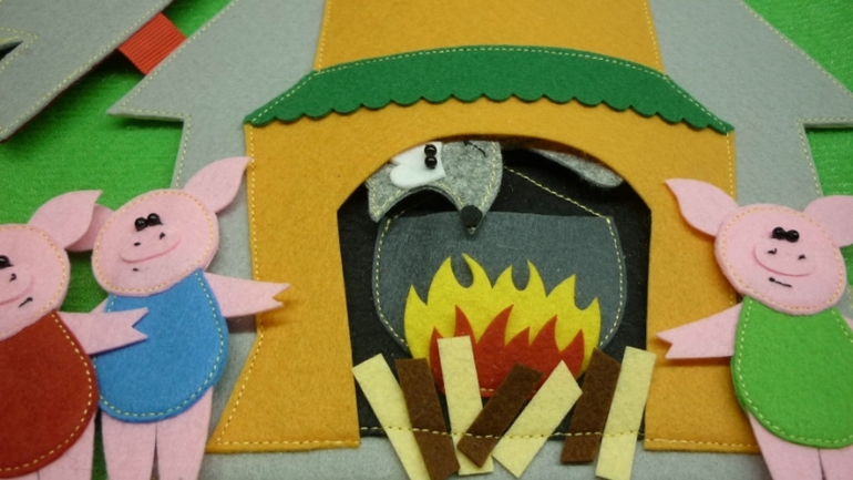 Очень красиво и аккуратно. особенно впечатляет волк, падающий в трубу У меня фантазии не хватило бы воплотить такое, а у Вас получилось! Снимаю шляпу)