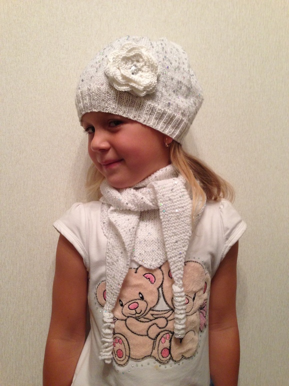 Вязала вот такую шапочку и остались у меня ниточки. Дополнила ее бактусом. Осенью успели поносить этот комплект.