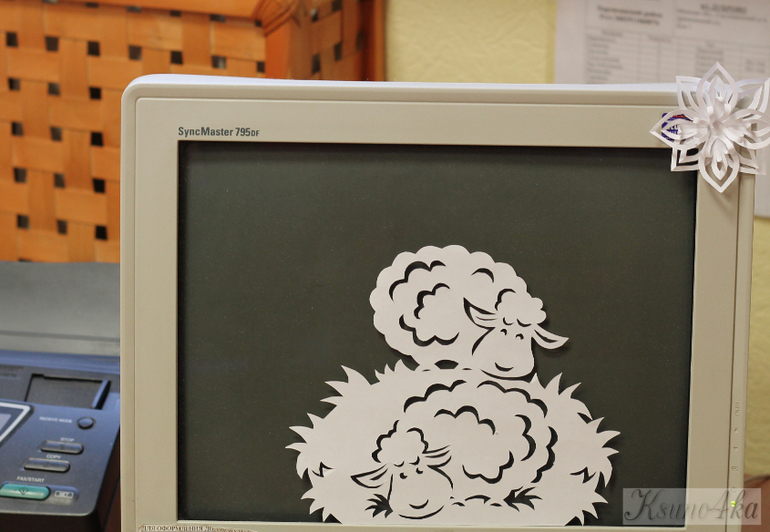 Пока меня нет, рабочий покой охранят овечки. Не волнуйтесь, они только приставлены к монитору)