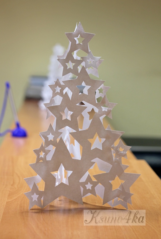 Звёздные ёлочки украсили стойку для посетителей. Мне очень понравилось их вырезать - очень просто и эффектно!