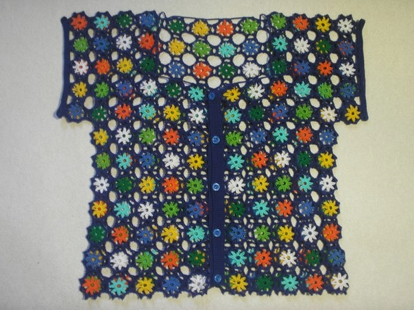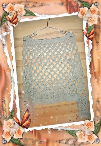 Кофта-сетка,Ниточки Джинс, крючок 2,5.