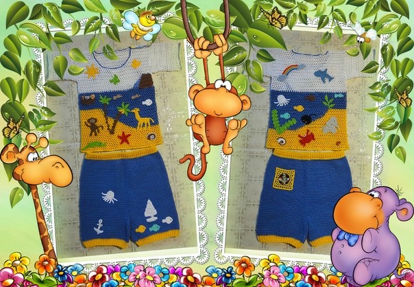 Я рисую море)Нитки сосо, расход 200 гр. крючок 2, на 1 годик(рост 80 см), окружность головы 46 см.